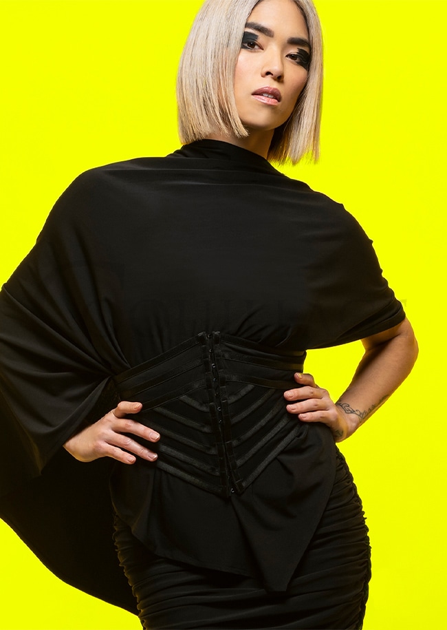 《クリスアンクローバーのサイズ選びについて》 ※本コレクションは大変伸びの良い、クリスアンクローバーのラグジュアリー・クレープ、ストレッチの効いたネット生地等で製作されております。