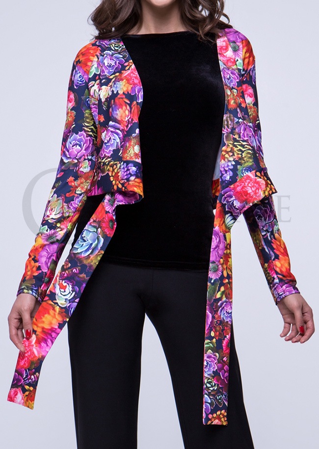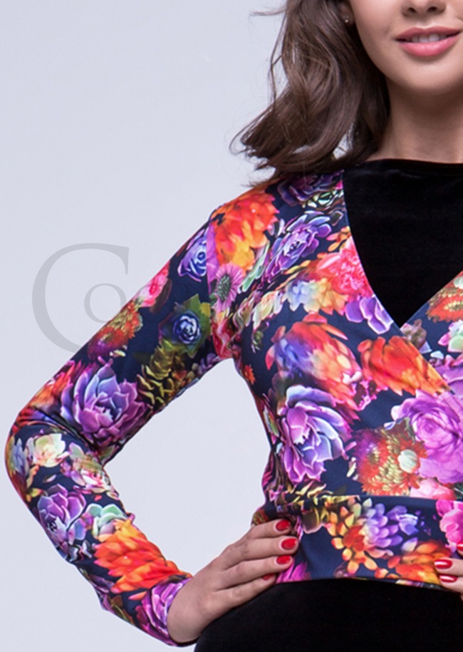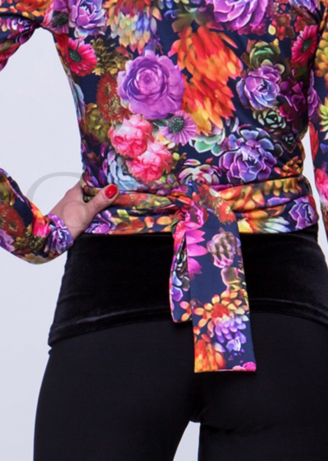 商品詳細大柄の花がカラフルで象徴的な、ご自身で結んでいただくVネックトップ、FDカンパニーのラップトップダンストップです。 |