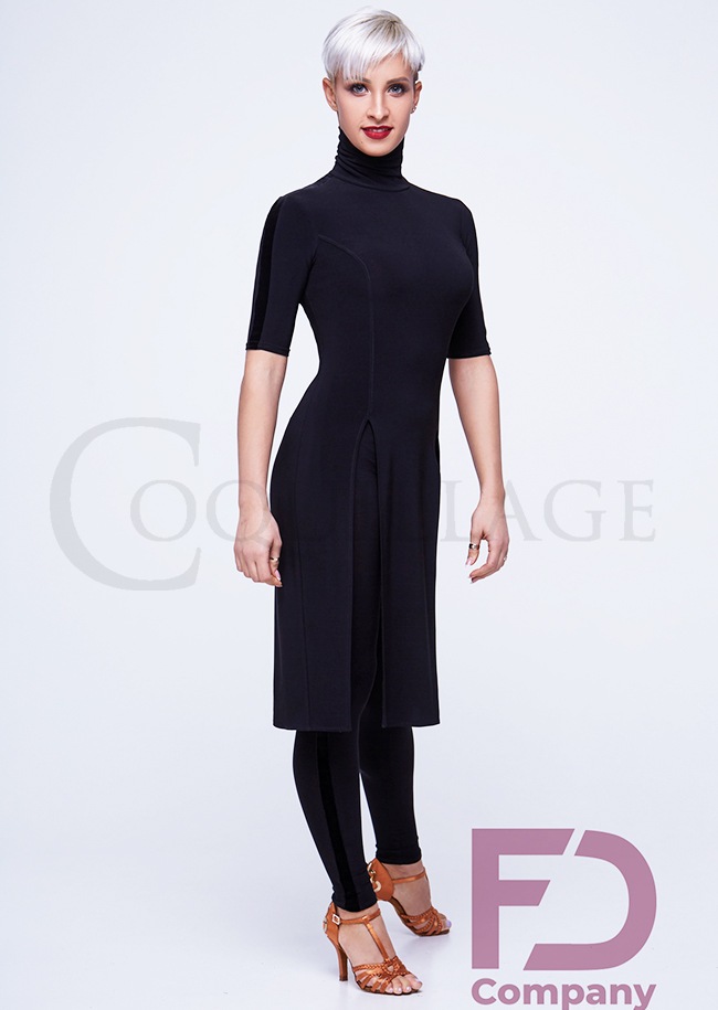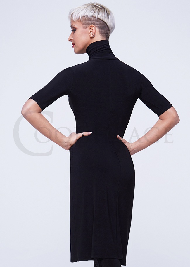 商品詳細洗練された印象のタートルネック・ラテンドレス。前面にスリットが入っており、レギンスと一緒にお召しいただくととても素敵にお召しいただけます。お袖にはベロアストライプが入っています。 *インナーパンツ、胸パッドはついておりません。 | ||||||||