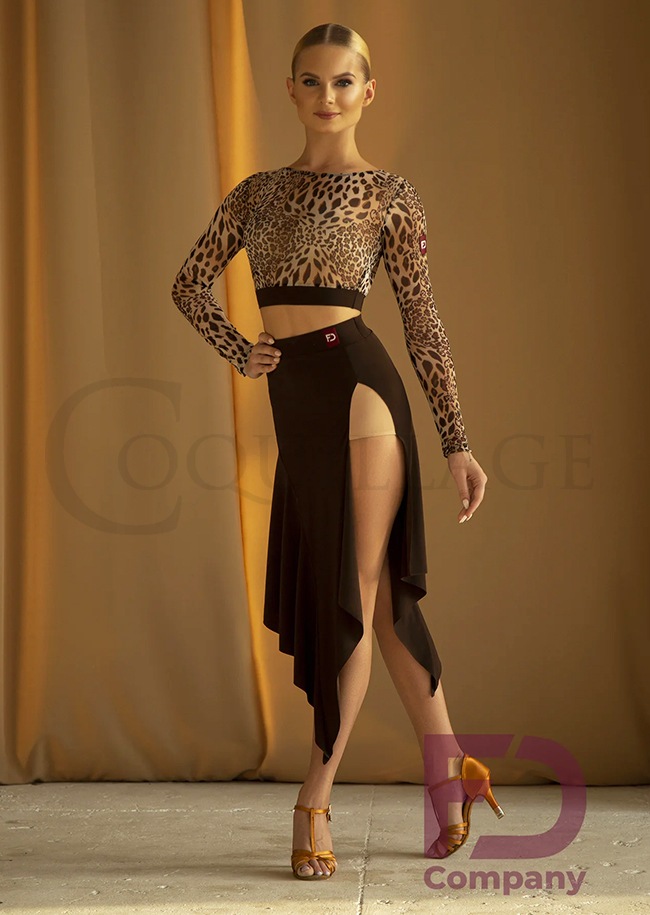 商品詳細深いスリットが印象的で質の高さを感じさせるFD カンパニーのラテンスカート、「シヴィ・ラテンスカート」。 |