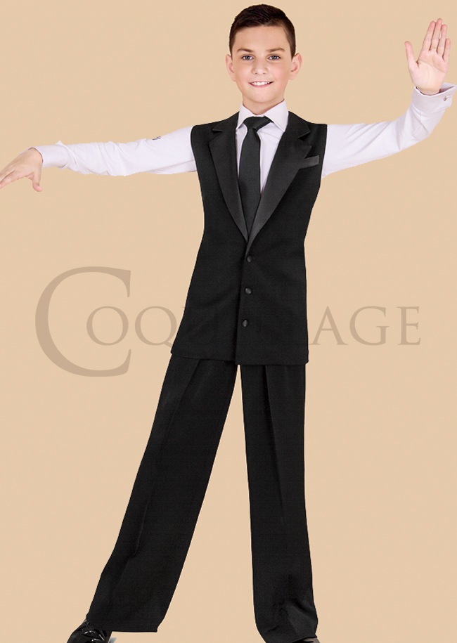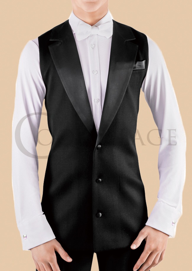 商品詳細ジャケットタイプの大きな襟とボディの長さのバランスが良い、スタイリッシュなダンスベストです。大人用でも人気ですが、ジュブナイルでも大変人気のあるデザインのベストです。 |