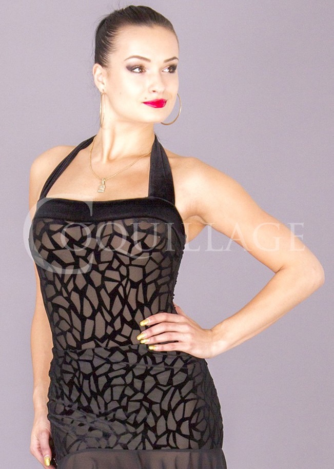 素材ストレッチベルベット、フロック生地(ストレッチネットにベルベットの模様が入った伸縮性のある生地) |