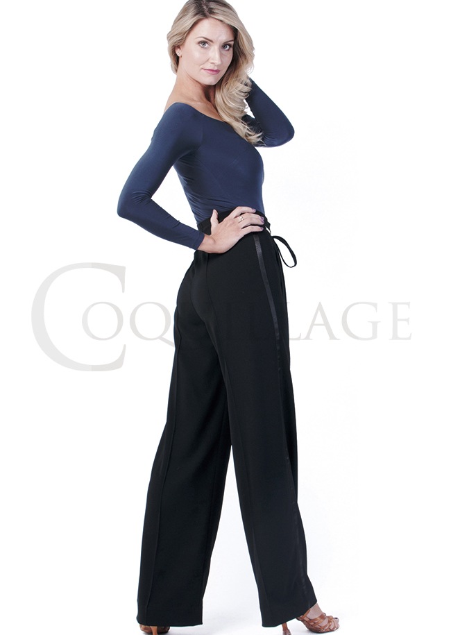通常のお洗濯後、ただ干しておくだけで、シワにならずに扱いが大変簡単!ストレッチのきいたクレープ素材で作られた、ニューヨーク・ミアリのブルックリン・ダンスパンツ。 *全て伸びる生地でできています *ウエストにはサテンリボンが入っており、自由に絞ったり緩めたりしていただけます *両側面には光沢のある側章が入っています。そのため、脚長効果も絶大です。 *クリースラインが縫われているので、アイロンをかけていただかなくても線が綺麗に出ます