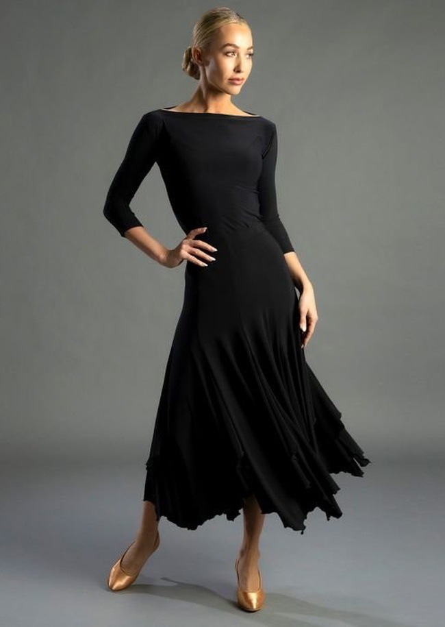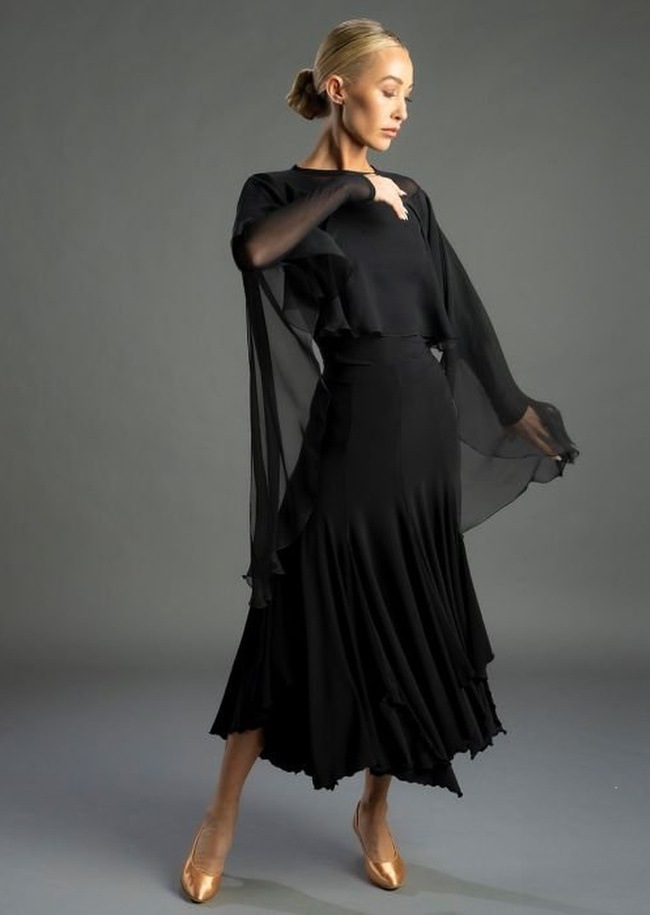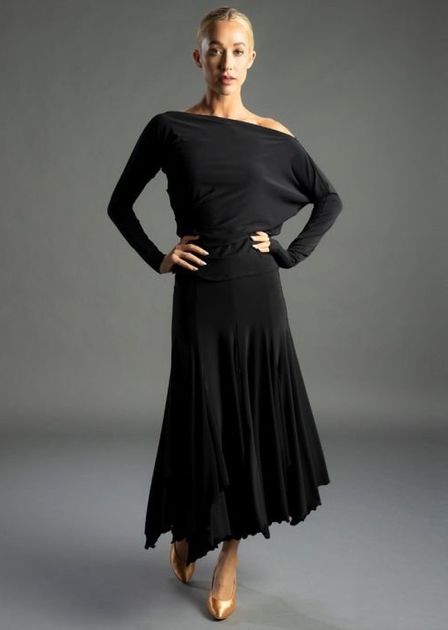 商品詳細この洗練されたスタンダードスカートは、ストレッチクレープ素材を使用したパネルデザインが特徴。花びらのようなハンカチーフフレアパネルが美しく広がり、ダンスの動きを一層際立たせます。 ★モデル画像のコーディネート商品★ | |||||