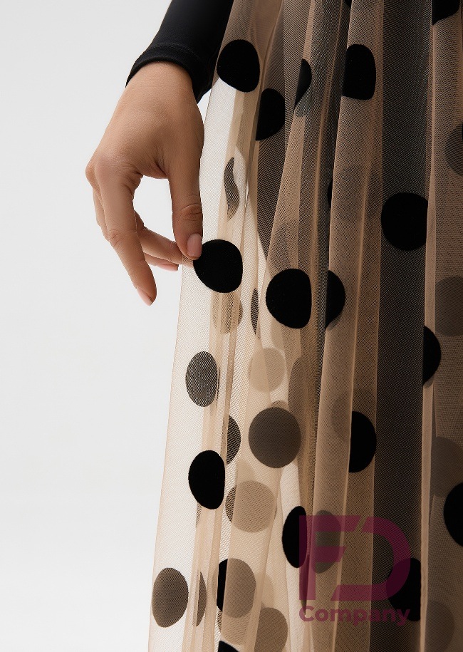商品詳細ドット柄フロックメッシュが印象的な、軽やかなシルエットのダンススカート | ||||||||